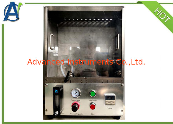 1. This Flammability Test Apparatus adopts stainless steel cabinet, width 370mm x length 220mm x height 510mm, with transparent viewing window;