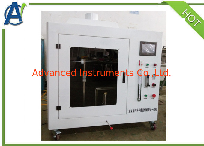 The foam horizontal burning characteristics apparatus is designed according to the national standard GB/T 8332-2008: the horizontal combustion method is used to determine the combustion performance of foam. It is suitable for measuring the horizontal combustion performance of small samples of foamed plastics with a density of less than 250kg/m³ under a small flame. The Horizontal Burning Characteristics Apparatus is equipped with PLC and touch screen to realize the intelligent measurement of the experiment, which can provide the experimenter with convenient and simple operation process to the greatest extent.